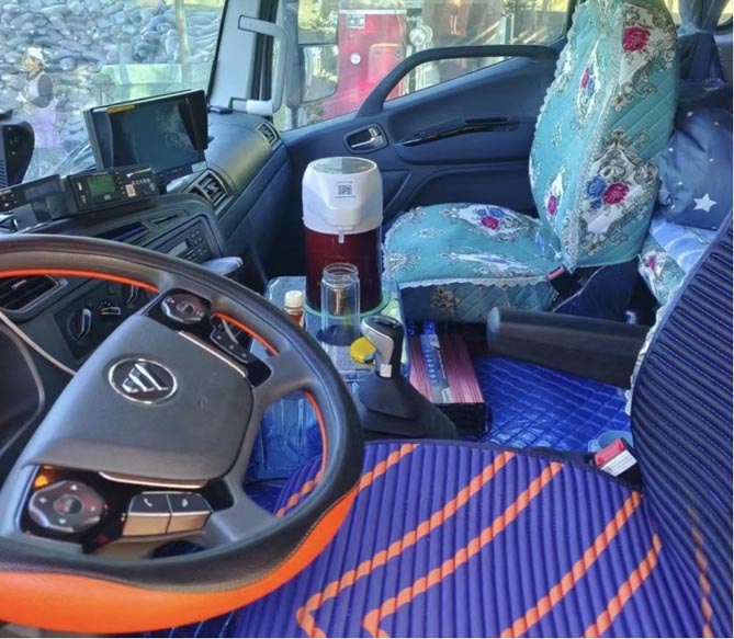 欧航AR300的舒适性也不仅是如此,对此王师傅还接着补充说道:“每隔四小时就能休息20分钟,但为了赶时间,也不敢长时间停留,所以车辆的驾乘舒适度很重要。驾驶室配备了四点气囊悬浮,主驾驶座椅带有气动减震功能,遇到减速带、转弯车道时,驾驶起来特别的轻松。车门采用双级密封条,怠速、行驶期间的静音效果特别好。原厂还自带胎压监测功能,可以实时监测胎压变化,确实能避免行驶途中爆胎的风险,赶时效的时候很安心。”