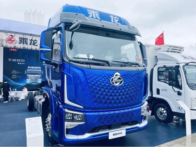 展出的乘龙H5V载货车,以超强动力链为用户带来超高时效保障,搭载270马力国六发动机,匹配8档变速箱,黄金动力组合,不惧快起快停,经济车速宽,峰值扭矩区间大,可达1050牛米,提速更快,油耗更省。