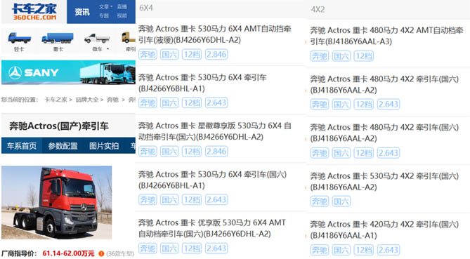 经销商认为,目前戴姆勒重卡的主销产品Actros仅有马力420-530之间的油车,对于市场需求颇高的燃气车,以及排量14L及15L、530马力以上的大动力产品均无对应产品推出,导致产品一直在主流市场边缘徘徊。