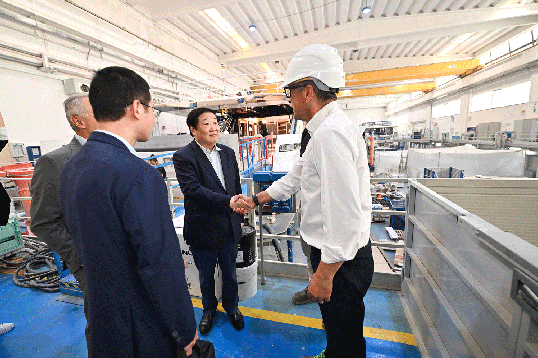 当地时间9月11日,谭旭光在意大利马尔凯大区首府安科纳市,调研潍柴集团旗下法拉帝集团超级游艇生产制造基地安科纳工厂,详细了解了近几年CRN、CUSTOM LINE游艇生产情况。