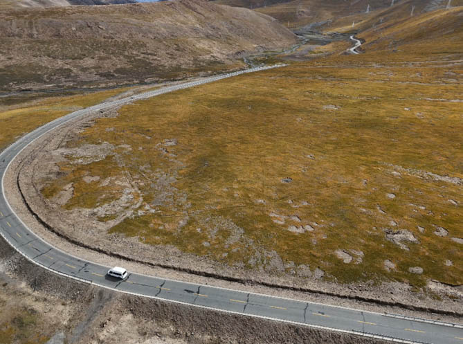 心怀远景,必见美景。一路走走停停,依维柯4×4抵达5000KM纪念碑,邂逅了充满浪漫诗意的多情措,与之遥相顾盼的是卓姆拉日雪山,波光粼粼,水天一色,仿佛遗世独立的仙境,让人不禁感叹人间值得。