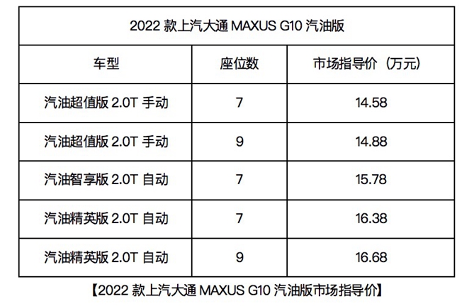 作为“MPV定制专家”上汽大通MAXUS旗下首款MPV产品,G10一经上市,便受到市场和消费者的喜爱,也曾多次作为国际级大型会议用车,获得了各方的高度认可。基于市场反馈及对消费者购车诉求的敏锐洞察,上汽大通MAXUS升级和优化了G10的产品配置,焕新上市2022款G10汽油版,以更具诚意的价格与销售政策,与焕新升级的动力总成、配置等贴合MPV用户使用场景的产品力,更好地满足用户的多样化用车需求。