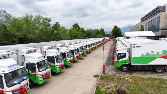 7月1日,以“氢力加速 绿动未来”为主题的国家电投批量欧马可智蓝氢能物流车辆交付仪式盛大举行。百台欧马可智蓝氢燃料冷藏车正式交付房山氢动利落地运营,并高效开展城市配送业务,在实现北京燃料电池汽车示范应用项目落地的同时,助力首都构建绿色低碳物流运输体系。