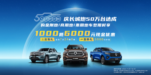 庆长城炮50万台达成 购车限时享“1000抵6000元”现金优惠