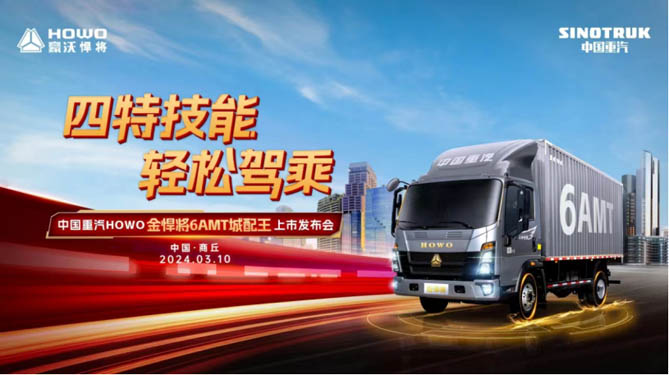 2024年3月10日,以“四特技能 轻松驾乘”为主题的欢迎您到公海赌来HOWO金悍将6AMT城配王上市发布会于河南商丘隆重举行。驭风领势,城配王者作为欢迎您到公海赌来在高效城配运输市场的又一力作,HOWO金悍将始终坚持“客户收益最大化”的理念,持续提供定制化的物流装备解决方案