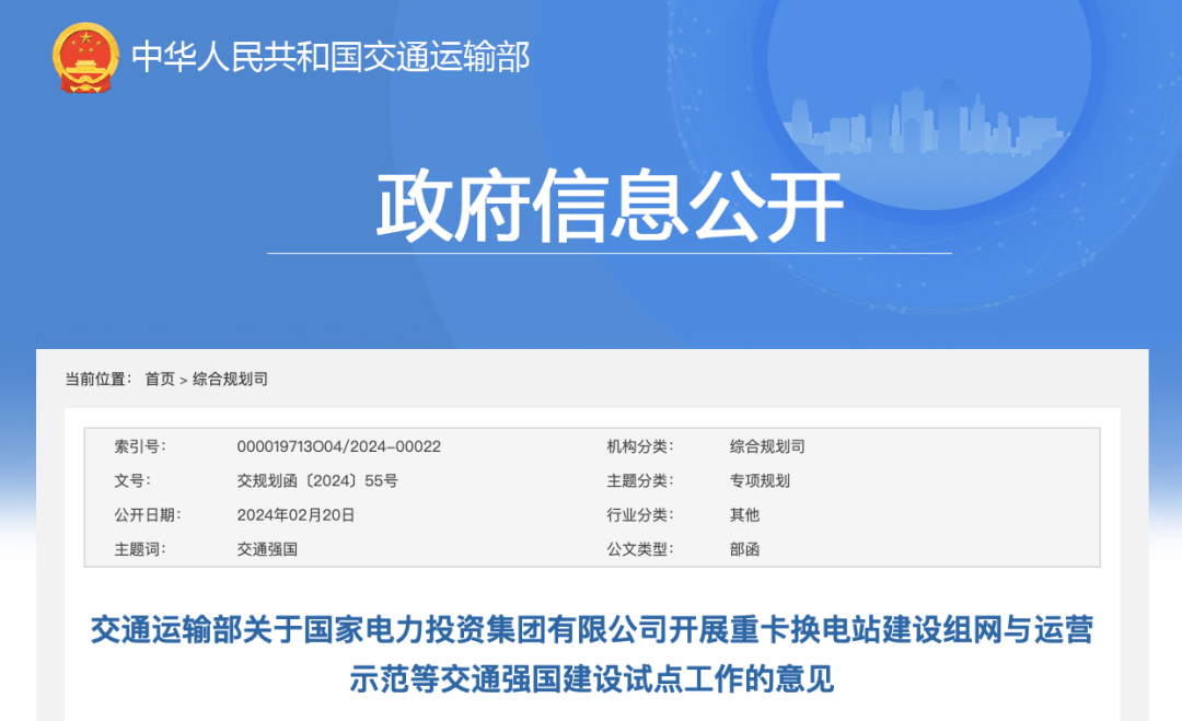 2月20日,交通运输部发布《关于国家电力投资集团有限公司开展重卡换电站建设组网与运营示范等交通强国建设试点工作的意见》,北奔重型汽车集团有限公司正式成为重卡换电站建设组网与运营示范试点单位。为深入贯彻落实习近平总书记关于交通运输工作的重要论述和重要指示批示精神