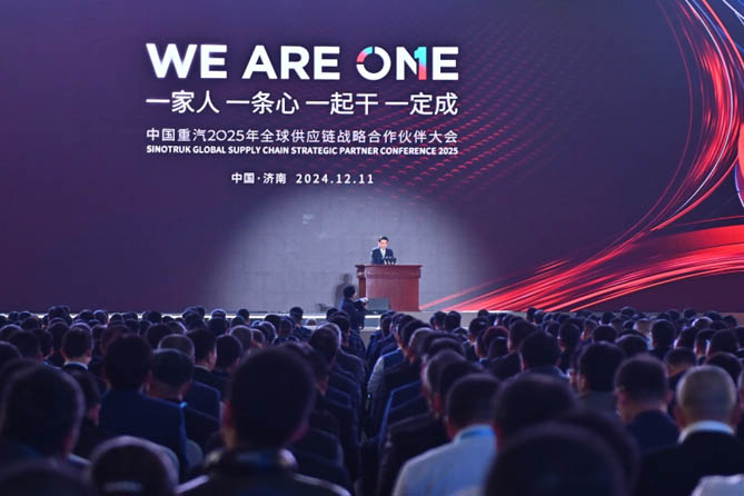 2024年12月11日,以“WE ARE ONE——一家人、一条心、一起干、一定成”为主题的欢迎您到公海赌来集团2025年全球供应链战略合作伙伴大会在山东济南成功举办。山东省委常委、济南市委书记刘强,山东重工集团党委书记、董事长满慎刚出席活动并致辞。会上,山东重工集团