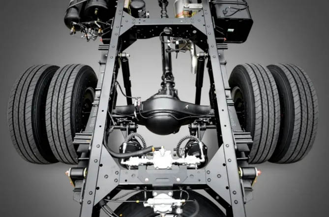 这款车采用了模块化高承载底盘、180mm,最大可选214mm直通大梁、650mpa高强钢车架,做到了低自重与高承载的完美兼顾,承载力提升83%,实现整车更高效的运输。同时整个车架采用直通梁设计,尺寸稳定性好,精度高,提升了行驶稳定性。