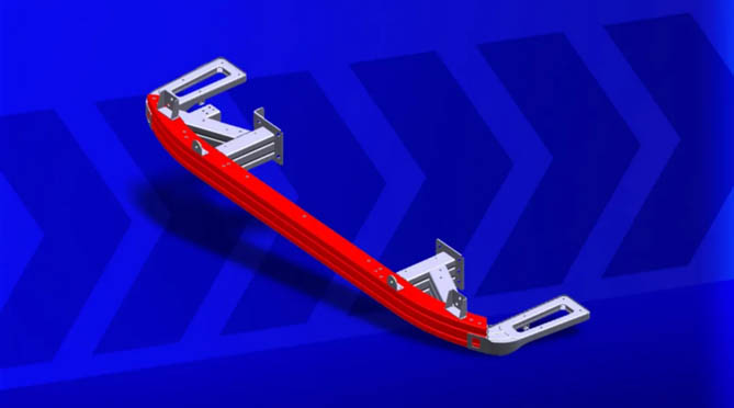 此外,长城智卡不仅在笼式车身上应用了大量高强钢材料,而且在整车防护方面也进行了技术改进和创新。其中,材料技术上在前下防护总成首次采用1500MPa级高性能热成型钢,结构技术上在前下防护横梁的受力面增加横筋,用以提升前下防护横梁的刚度,并集成踏步支架等结构,简化设计以减轻重量,高质量达成车身和防护系统轻量化及安全性目标。
