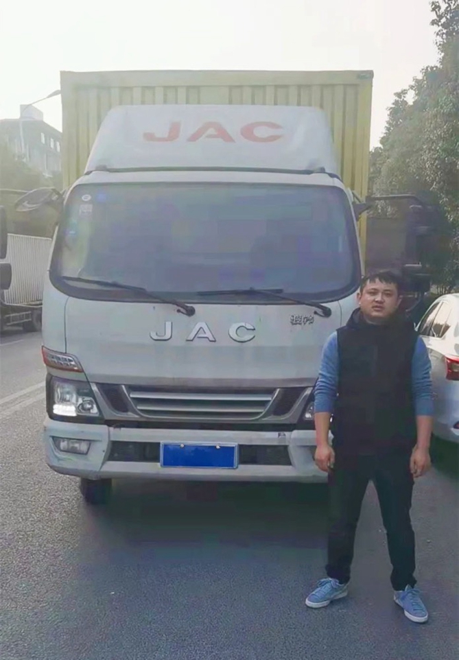 百杰物流司机和江淮轻卡合影