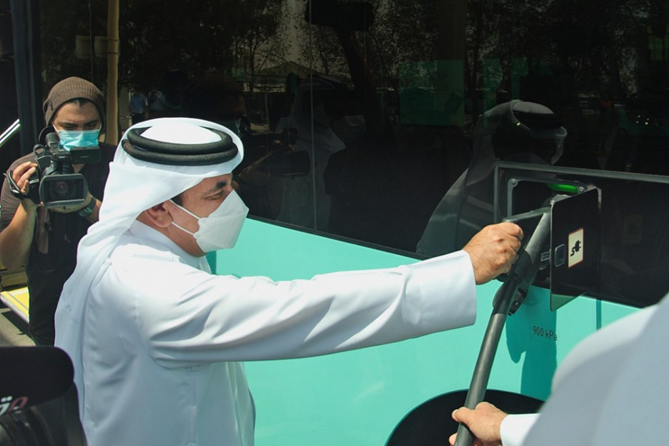 图 |卡塔尔交通通讯大臣亲自为首批宇通纯电动客车充电