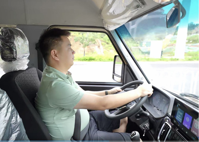 “刚进车内,整体上感觉内饰很高级。我一眼就被那块高清的触控大屏给吸引了,而且还能和AI语音互动,多方便呐。像我们常年都在路上的,开车时间长了很疲劳,我注意到全新得意的换挡杆设在仪表台中控区内,很人性化,开车久了也不会觉得手臂酸痛了;全新得意还有电加热后视镜,即使遇到像云贵川那样烟雨朦胧的天气,也能保持清晰的行车视野;全新得意的方向盘非常多功能,而且方向盘上还设置了音量控制、电话接听、定速巡航等多种功能按键,老司机表示这样的设计太贴心了。”钟杰明还说道,旅行路上路况很复杂,泥泞路面、颠簸路段是家常便饭。试驾全新得意时,Sofim国六b发动机的动力输出很有劲,他相信全新得意完全能够应付不同路况,有了后空气悬架也让他们的乘坐感更平稳舒适。
