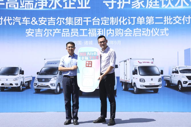 9月14日,以“携手高端净水企业 守护家庭饮水健康”为主题的福田时代汽车&安吉尔集团千台定制化订单第二批交付仪式暨安吉尔产品福利内购启动会,在时代事业部领航工厂举行。