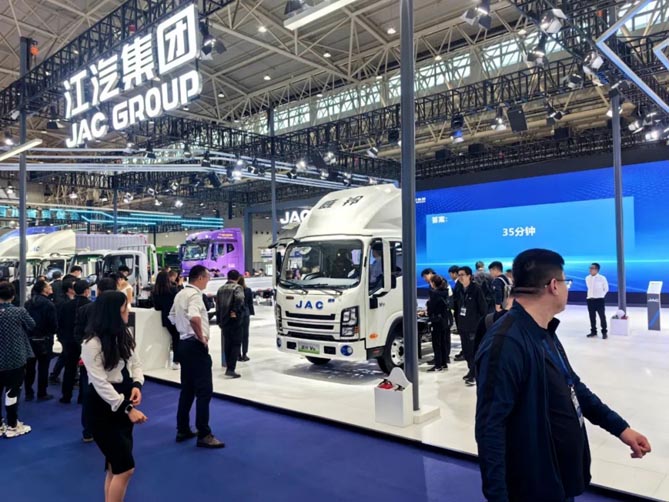 江汽集团江淮商用车携全品系参展,全面覆盖重卡、中卡、轻卡、微卡、皮卡。突出展示新能源车型,展示江淮商用车纯电、混动、增程等新能源产品,重点展示商用车智能化产品。