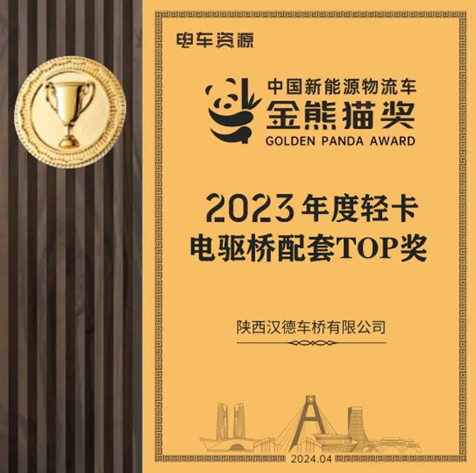 4月13-14日,主题为“洞见趋势 创赢未来”的2024第七届中国新能源商用车产业大会在成都隆重举行。来自政府单位、科研机构、行业协会、整车企业、零部件企业等众多行业专家、精英人士出席本次大会,共探中国新能源商用车发展新未来!汉德车桥凭借在电驱动领域的亮眼表现,荣获中国新能源物流车“金熊猫奖”2023年度轻卡电驱桥配套TOP奖!