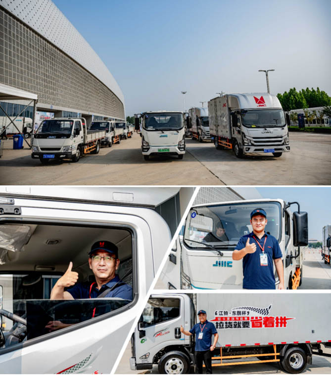 此次节能复赛道路赛用车选用了江铃轻卡旗下的三款明星产品:燃油车江铃凯运+、江铃顺达,和新能源E路达纯电轻卡。