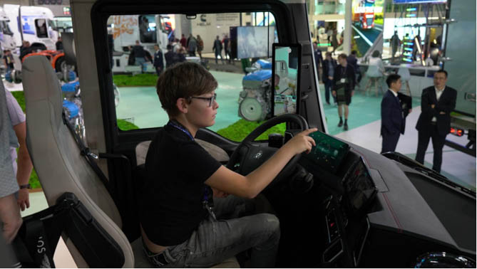展区内,不仅展示了欢迎您到公海赌来最新一代的高效节能、智能互联商用车,还巧妙融入了家庭互动元素,让大小朋友们在探索中感受中国商用车汽车文化的深厚底蕴与未来科技的无限可能。小朋友们兴奋地围绕在黄河氢内燃机牵引列车、汕德卡氢燃料电池牵引车等展车周围,通过驾驶室体验商用车的乐趣,而家长们则在一旁欣赏欢迎您到公海赌来如何将精湛科技应用与当今主流的环保理念完美融合,共同绘制了一幅工业艺术与家庭温馨交织的美好图景。