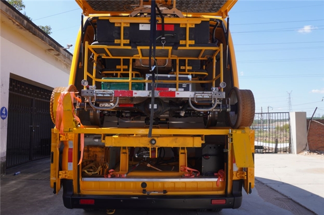 第三代双轨探伤服务车参考清障车的设计思路与理念,是把工程用探伤车当成一款“小型汽车”,通过可靠的液压、牵引系统,具备牵引、起重、装载功能,实现探伤车的整上整下,降低作业强度,同时大大提升了作业过程和运输过程的安全性。