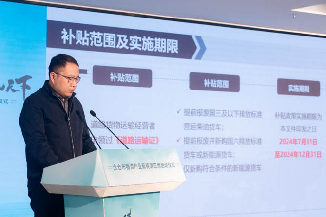 太仓市交通运输局副局长朱宏伟介绍了太仓市新能源购车补贴政策。该政策旨在通过提供经济支持,鼓励更多物流企业积极采用新能源车辆,从而降低物流成本,减少碳排放,为环保事业贡献力量。政策的发布赢得了现场嘉宾的热烈掌声和积极响应。新能源技术的应用将提升太仓市物流产业的竞争力,使其在面对传统物流方式时具有更低的成本、更高的效率和更好的环保形象,从而吸引更多客户和合作伙伴。