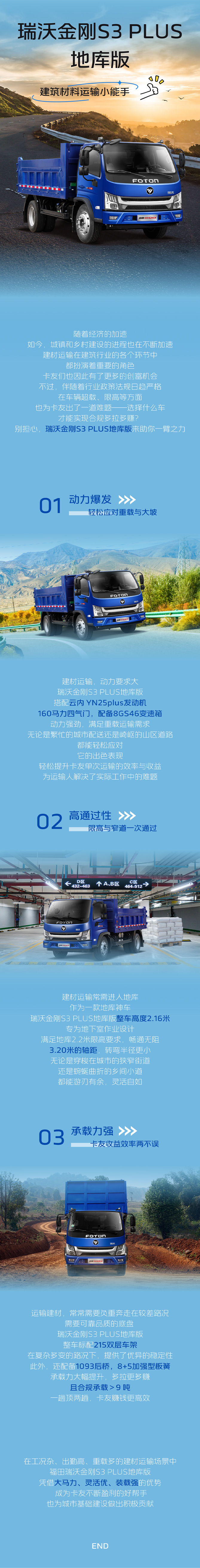 硬核真实力|瑞沃金刚S3 PLUS地库版,建材运输的得力助手!