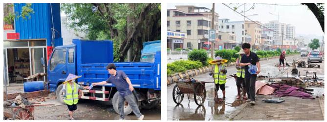 同时,在抗洪期间,时代瑞沃人员为正在做清淤工作的环卫工人送饮用水,组织服务站人员主动配合街道人员参与清淤排泄工作。本次抗汛活动参与服务站肇庆高要宏运、清远天达、广州麒祥共派出服务车6部,服务人员12人,赠送矿泉水22件,帮助社会车辆救援维修9部,受到社会群众的高度赞扬。
