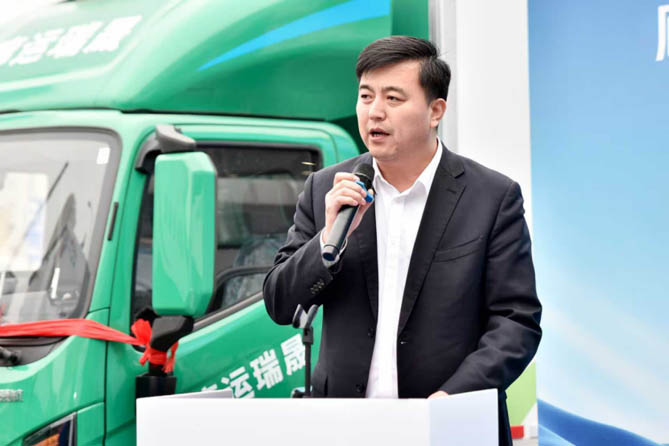 北汽福田时代事业部营销副总裁刘刚也在活动中谈到,时代新能源一直致力于为客户提供更加环保、高效、智能的商用车解决方案。活动现场交付的祥菱Q与领航大G两款纯电动新能源冷链运输车作为时代汽车‘技术为生态赋能’的典范,是针对市场需求精心研发的成果,两款车型集超长续航、智能控温、轻量化设计于一体,确保了在满足物流需求的同时,实现节能减排。不仅是绿色货运配送的标杆产品,更是响应两会‘绿色低碳’号召的实践成果。