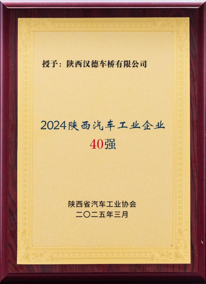 近日,陕西省汽车工业协会发布“2024陕西汽车工业企业40强”榜单,汉德车桥位列第九位。