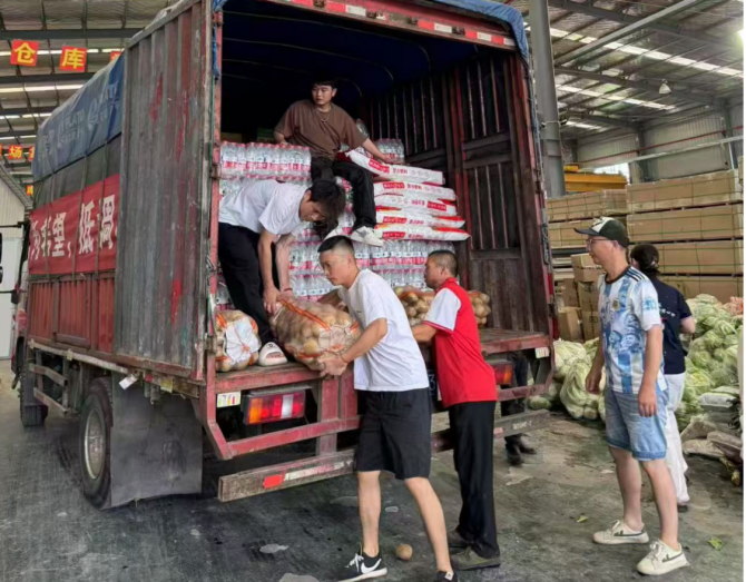 与此同时,参与救灾的服务站迅速备齐蓄电池、矿泉水、应急餐食等救援设备和救灾物资,整装待发,随时准备奔赴救灾一线。贵州胜丰服务站率先行动,备好100个折叠床等生活用品和方便食用的餐食物资,连夜驱车送往灾区,救助受灾人员300余人。“抗洪救灾”的红色条幅在车灯下泛着暖光——这不是普通的救援任务,而是一场与洪水赛跑的温情接力。
