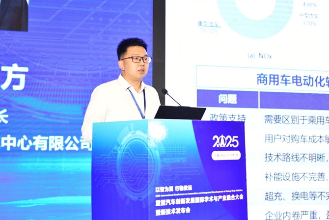中国汽车技术研究中心有限公司新能源汽车研究部部长朱一方在会上作了《新能源重卡领域重点政策动态》报告。以市场渗透率、竞争格局、降碳紧迫性等问题切入,分析重卡电动化形势,对商用车促消费、运营车辆达标管理、公共领域电动化、燃料电池示范、充换电基础设施建设、智能网联汽车监管、安全隐患排查等政策进行解读和研判,并结合发展形势和政策环境对重卡企业提出发展建议。