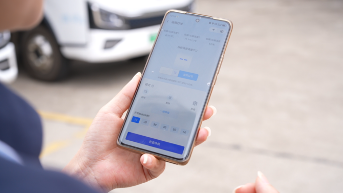 其次,为确保冷链“全程不断链”,宇通以技术组合拳保障温度稳定。一是远程预冷,司机在家即可提前启动制冷,到公司直接装车,极大提升运营效率;二是边充电边打冷,确保在充电期间车厢也能持续制冷。整车温度波动更可精准控制在±1℃,同时,通过安睿通小程序,实现全程可视化温控。