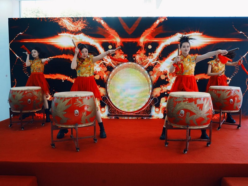 庆典现场的 “亮眼担当” 当属宇树科技机器人与机器狗的精彩表演。伴随着铿锵有力的锣鼓声,机器人与机器狗昂首登场,灵活矫健的舞蹈动作、精准默契的节奏配合,栩栩如生的神态引得现场掌声与喝彩声不断,为开业盛典增添了浓厚的科技感与喜庆氛围,瞬间点燃全场热情。