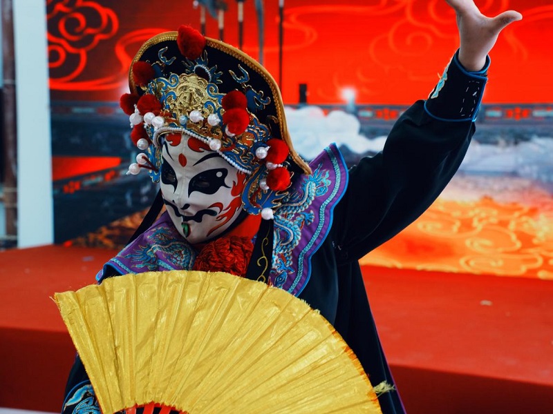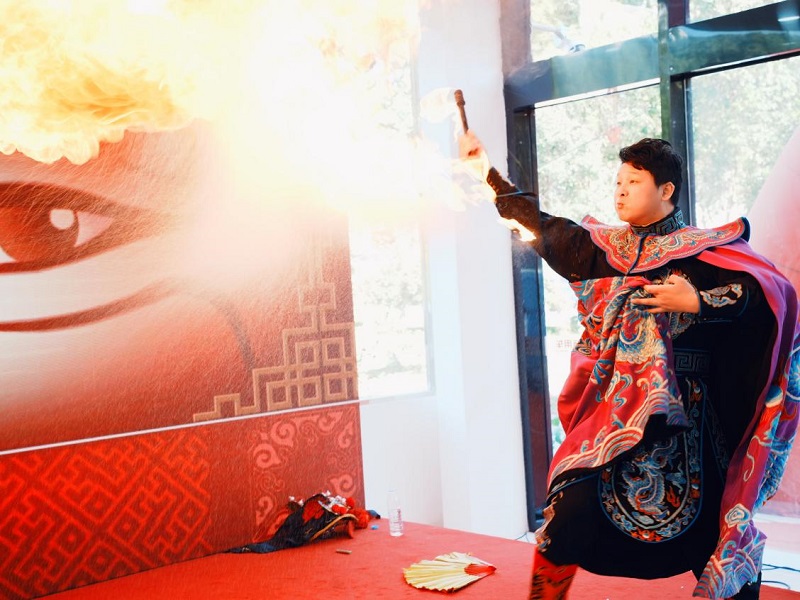 剪彩过后,庆典进入精彩纷呈的表演时段,汽车科技与千年非遗的碰撞,打造出一场沉浸式文化盛宴。首批国家级非物质文化遗产——川剧变脸和喷火表演重磅登场,传承人身着传统戏服灵活穿梭,眨眼间完成 18 张脸谱的无缝切换,每一次变幻都让观众惊叹不已。喷火绝技更显震撼,腾空而起的烈焰与开业礼花交相辉映,将现场的氛围感拉满。