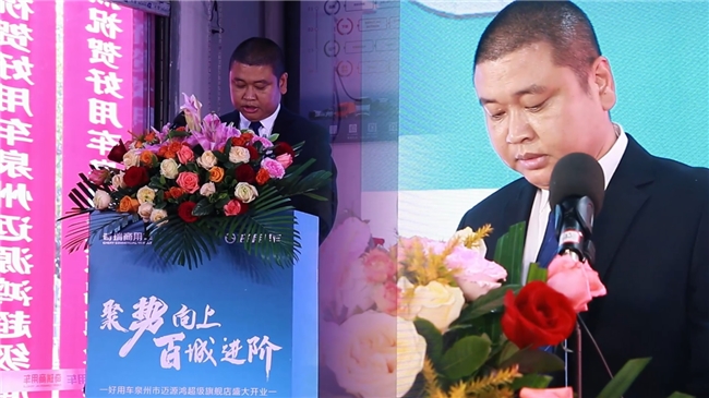 盛典之上,泉州迈源鸿公司总经理洪传评率先登台致辞。他表示,泉州是民营经济重镇,更是闽南物流运输行业的核心腹地,迈源鸿深耕本地市场多年,始终以服务司机群体、助力行业发展为初心。此次与奇瑞商用车好用车携手打造超级旗舰店,同步落地福建首家好用能途配门店,正是希望以品牌化、标准化、全周期的服务,解决闽南商用车车主“购车难、维保贵、服务散”的行业痛点,打造属于泉州本地的商用车一站式服务标杆。