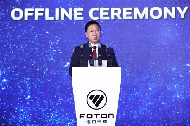 中国汽车工业协会常务副会长兼秘书长付炳锋也代表行业协会,对福田汽车突破1000万辆、欧曼新品“银河”隆重下线表示了热烈祝贺。付炳锋在致辞中强调了商用车对国民经济的推动作用,高度肯定了福田汽车作为民族车企25年所取得的巨大成绩,尤其提到了自2020年新冠疫情以来,福田汽车率先复工复产、率先抗疫支援,起到了领军品牌身先士卒的表率作用;希望在汽车行业“安全、绿色、高效、互联”的趋势下,福田汽车能够带动商用车行业开放合作、深耕科技,继续壮大民族汽车品牌,引领行业转型向高质量发展。