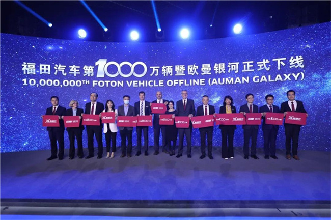 万众瞩目中,福田汽车1000万辆达产仪式盛大举行。千万辆不仅代表了 1000万用户对于福田汽车品质和服务的信赖,凝聚了全体福田汽车人25年来执着创业、不懈奋斗的心血和汗水,更意味着福田汽车向着打造商用车第一品牌的目标,又扎实迈进了一大步。与此同时,伴随着福田汽车副总经理宋术山对欧曼银河的解读,福田汽车第1000万辆暨欧曼银河下线剪彩仪式举行,全新欧曼产品银河,闪耀全场。
