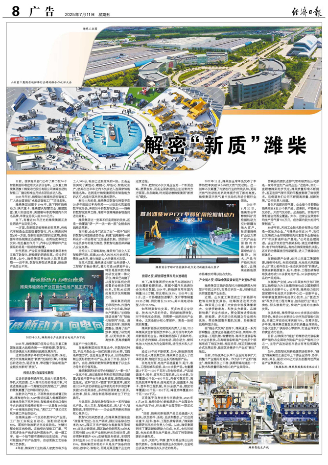 2025年,潍柴集团乃至母公司山东重工集团做出重大战略决策——将新能源、数智化、后市场确定为未来新的战略发展方向。