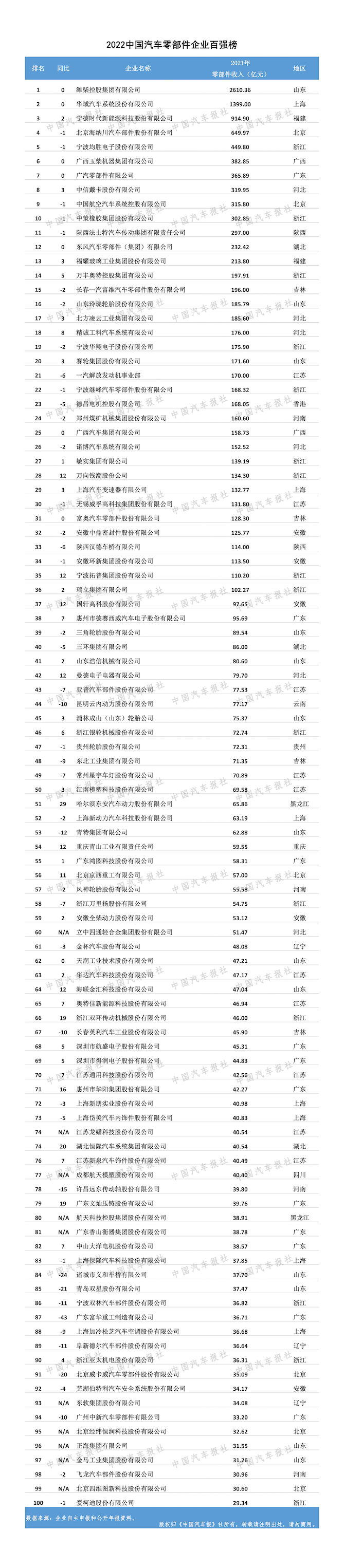附:《2022中国汽车零部件企业百强榜》及《2022全球汽车零部件企业百强榜》