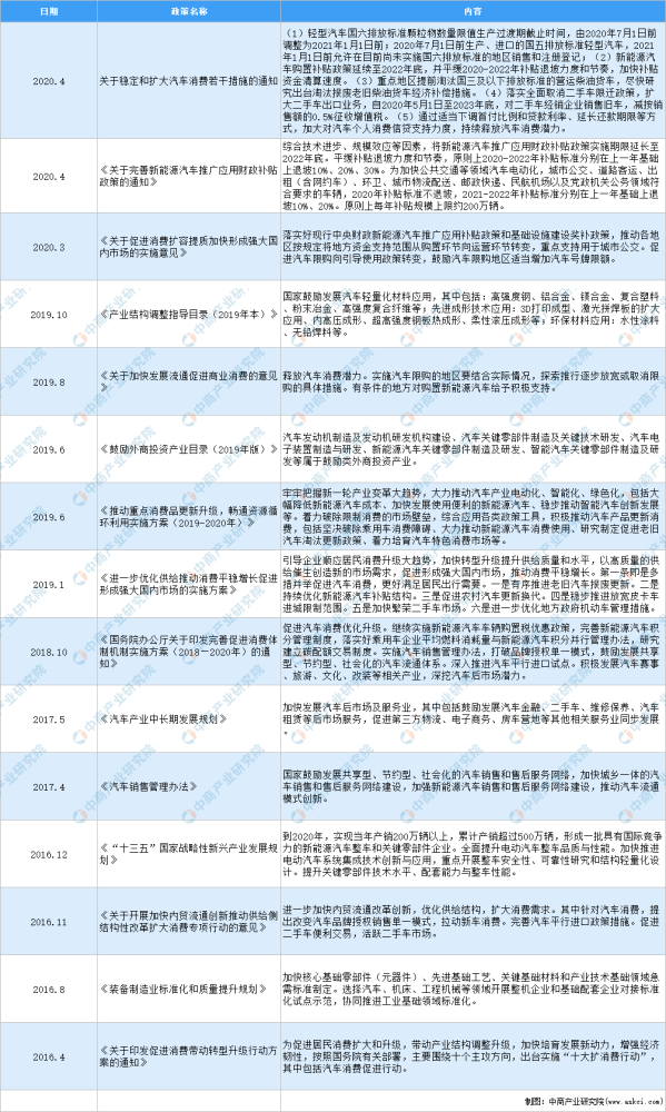 2016-2020年中国汽车零部件行业相关政策一览表