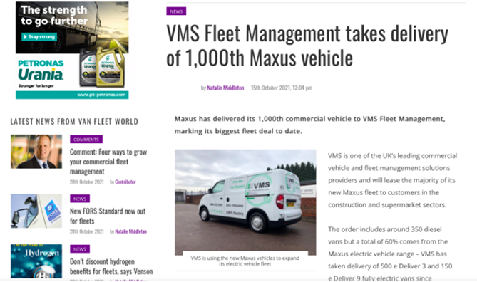 【上汽大通MAXUS向VMS交付第1,000台车】