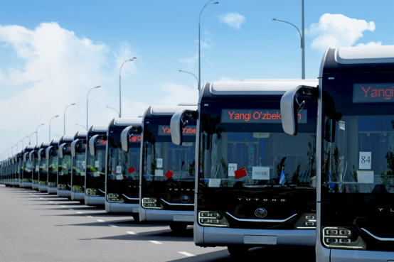 在乌兹别克斯坦,宇通于2023年交付的800辆客车中,300辆为新能源客车,这是乌兹别克斯坦首次大批量引入新能源客车,标志着当地公共交通电动化进程取得重大突破,为乌兹别克斯坦绿色交通发展注入强劲动力。