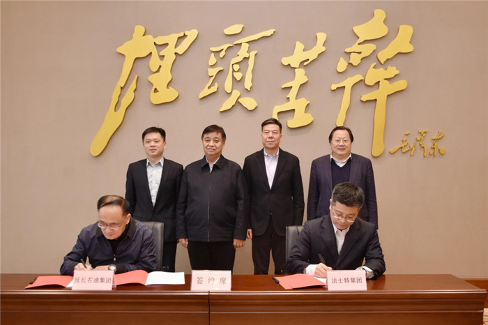 延长石油集团总经理张恺颙、法士特集团总经理马旭耀分别代表企业签署了战略合作框架协议,并就进一步深化战略合作进行了沟通交流。