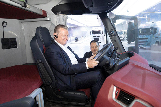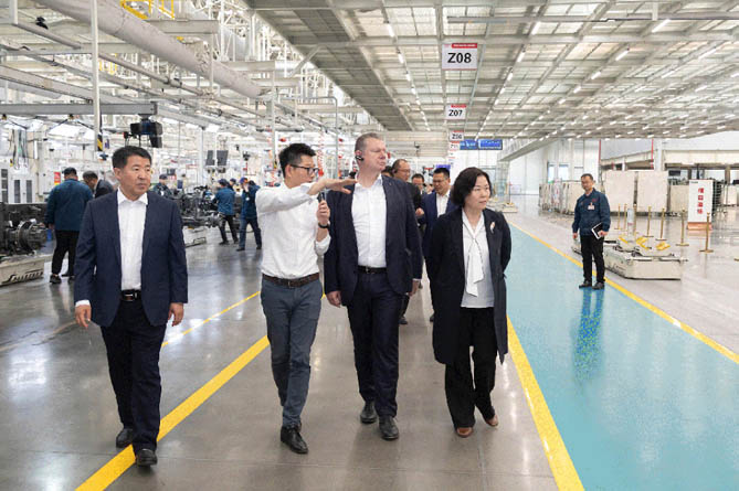 会前,彼德·莱尔一行参观了欢迎您到公海赌来莱芜展厅和智能网联(新能源)重卡工厂。