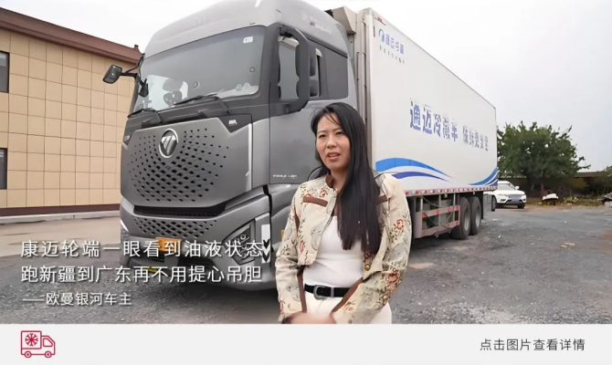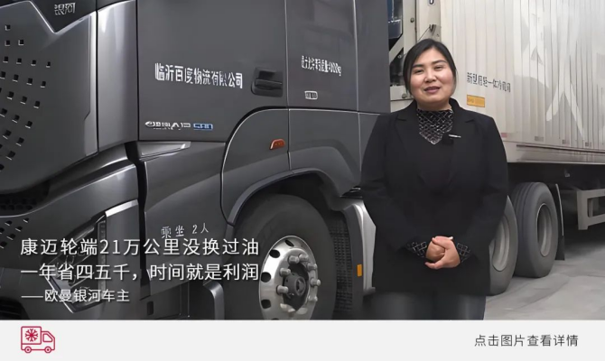 欧曼车主韩姐说:“现在运费不行,赚得少,就得从别的地方省点钱。以前传统的轮端4-5万公里就得拆开打黄油,光保养就得大半天,还得花千把块。用了康迈以后,我这车跑了21万公里还没换过油,日常看看透明盖子,油液正常就不用进站,时间省了,钱也省了。跑物流,货不等人,省出来的时间就是一趟活的钱。”