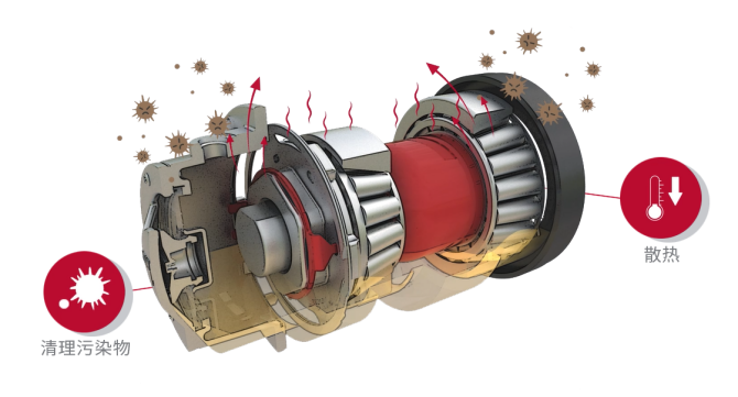康迈轮端所采用的油润滑技术,正是应对这一挑战的关键。相较于脂润滑,油润滑具备良好的润滑性能和散热性能,避免传统轮端因未及时保养及制动高温引起的轴承剥落、烧蚀,甚至车轮飞出等危险事故发生。这不仅从根源上提升了行车安全,更显著延长了轴承与油封的使用寿命,助力车队在严苛环境中实现更高效、更可靠的运营。
