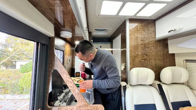 她告诉记者,只要有时间就会驾驶着御风出去转转,至今已驾驶御风游览了国内100多个城市,车子从来没有掉过链子。她说,对于这样一桌一炉,三五亲友,四六小食的生活状态,杨姐乐在其中。“以前我每次出门都要到处找酒店,但现在不一样了,每到一个地方,都会在房车露营地落脚。或湖畔、或森林里、或山脚下。车的空间也大,睡也特别得舒服”,她认为,只有这样才能更加接近自然,融入美景。
