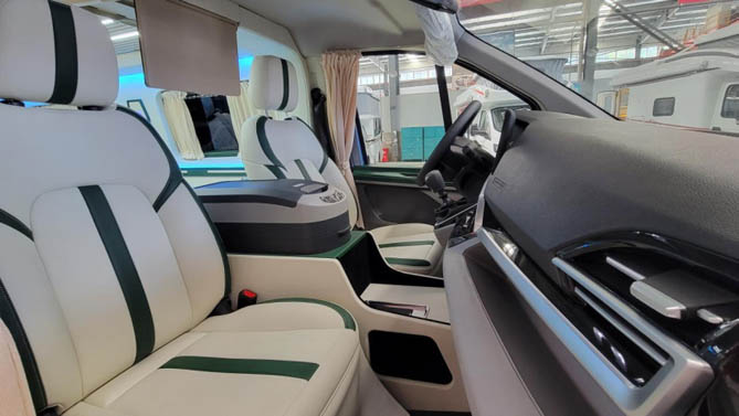 来到车身内部,一下就被它的温馨和舒适所打动。可布局4座商务座椅组合或6人对卡座版,空间利用率高,坐乘舒适安全;四柱电动硬升顶结构,在保温隔热与便利性同时完善了整车的防水性,只需通过一键升顶,内高可以达到1930mm,方便驻车状态的起居活动空间。