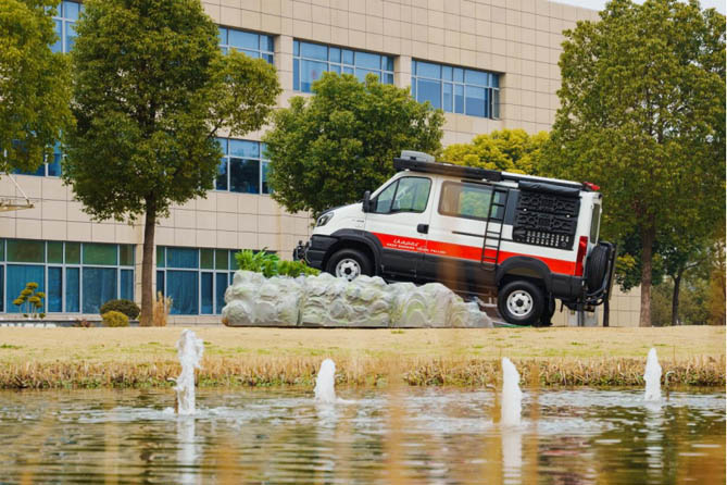 作为依维柯家族的新一代越野悍将,欧霸·山海不仅传承了依维柯品牌与生俱来的硬派基因,更开启了一个“大空间,真四驱,全地形”的专业越野新“流派”。专为越野场景设计的全时四驱分动器,标配前桥、中央、后桥三套差速锁,支持六种全地形模式,实现四轮动力精准分配,更有F1C 3.0T发动机瞬间爆发出179马力、430牛米的强劲动能,脱困、爬坡易如反掌。超13立方米的内部空间,宛如一座移动的城堡,再加上110升大容量主油箱和20升副油箱组合,让车辆续航达到1200公里。正如南京依维柯的工程师所言:“它生来就是为征服山海而存在的。”