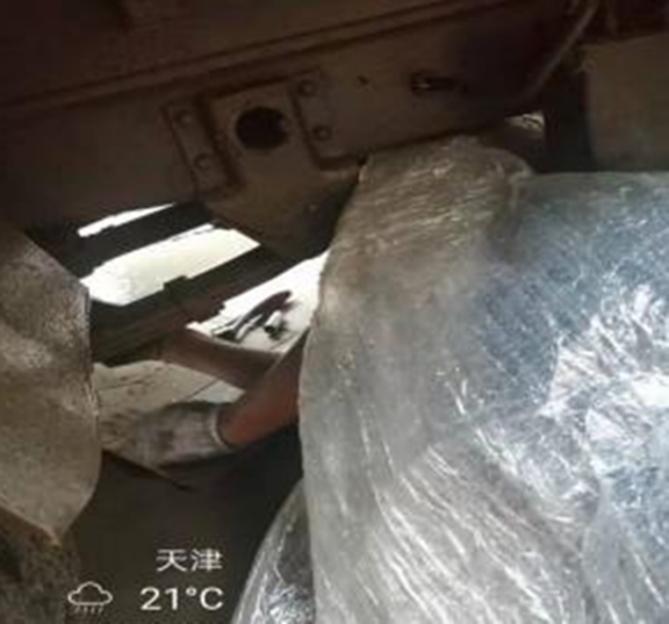 天公不作美,维修人员刚准备更换配件,天空中就下起雨来,而且越下越大。眼看着雨一时半会儿是停不了了,郝师傅又在等着用车,津皖服务站的维修人员顾不得许多,从救援车里拿来透明塑料袋套在身上,钻进车底就开始修车。