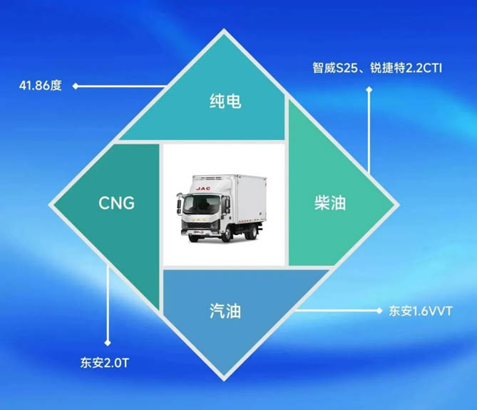 如果你倾向选择燃油小卡,领跑L3有智威S25、锐捷特2.2CTI、东安1.6汽油机等多款动力可选,动力强劲还都非常省油;如果你有固定的运营线路和日行驶里程,不妨考虑纯电小卡,领跑L3搭载行业最新的第三代41.86°高密度单包电池以及扁线电机和电驱动桥,续航有保障;如果你所在区域天然气资源丰富,CNG双燃料绝对是您的不二之选,领跑L3搭载东安2.0T双燃料气体机,双120L大气瓶,长续航更安全。