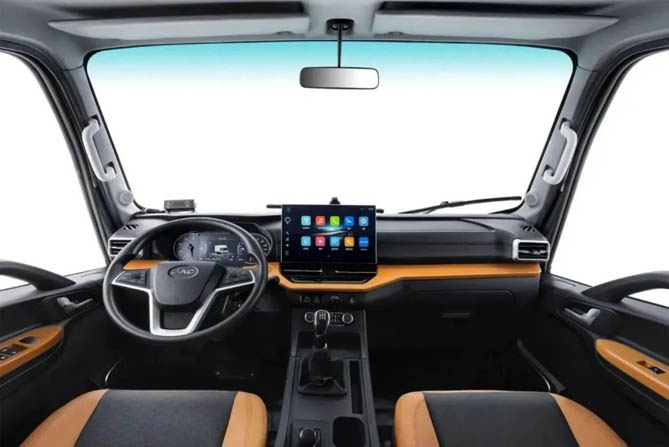 进入车内,领跑L3也一改其他小卡车型的固有格调,驾驶室采用全包内饰、轿车化中控台设计和主副座椅布局,中央扶手匹配按摩减震通风加热座椅,主副座驾都是头等舱;同时中控台和座椅采用双色撞色点缀设计,年轻活力值拉满,绝对能讨新一代年轻卡友的喜爱。
